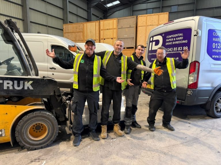 At iD Solutions, we complete over 1,000 secure collections every month, protecting our clients’ confidential paperwork and hard drives. Behind that success are four outstanding team members — Stephen, Fin, Brian and Ben, our Chief Shredding Operative.